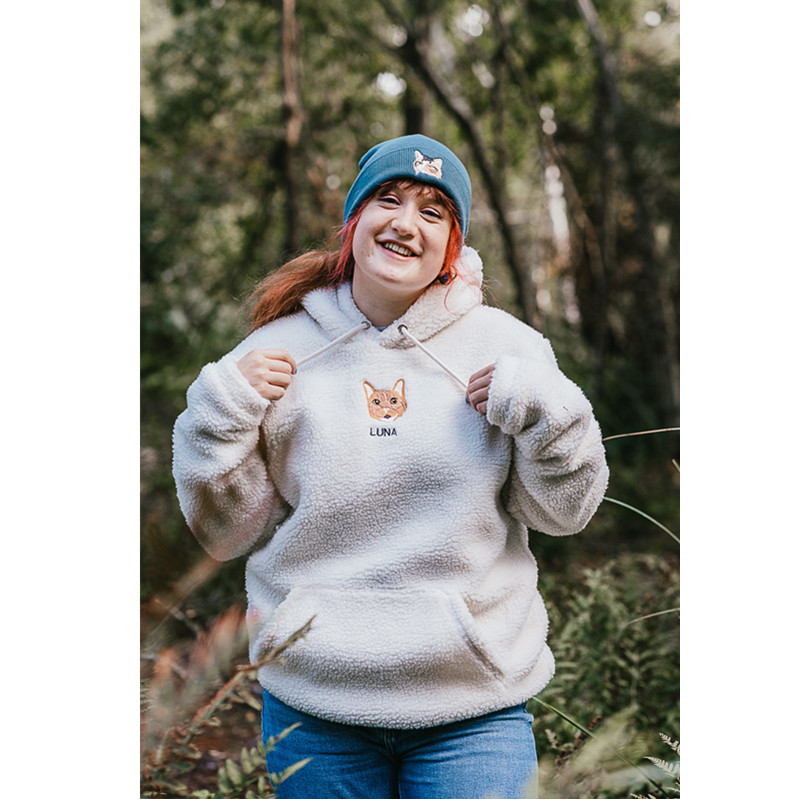 Personalized Embroidered Pet Portrait Recycled Sherpa Hoodie Jacket