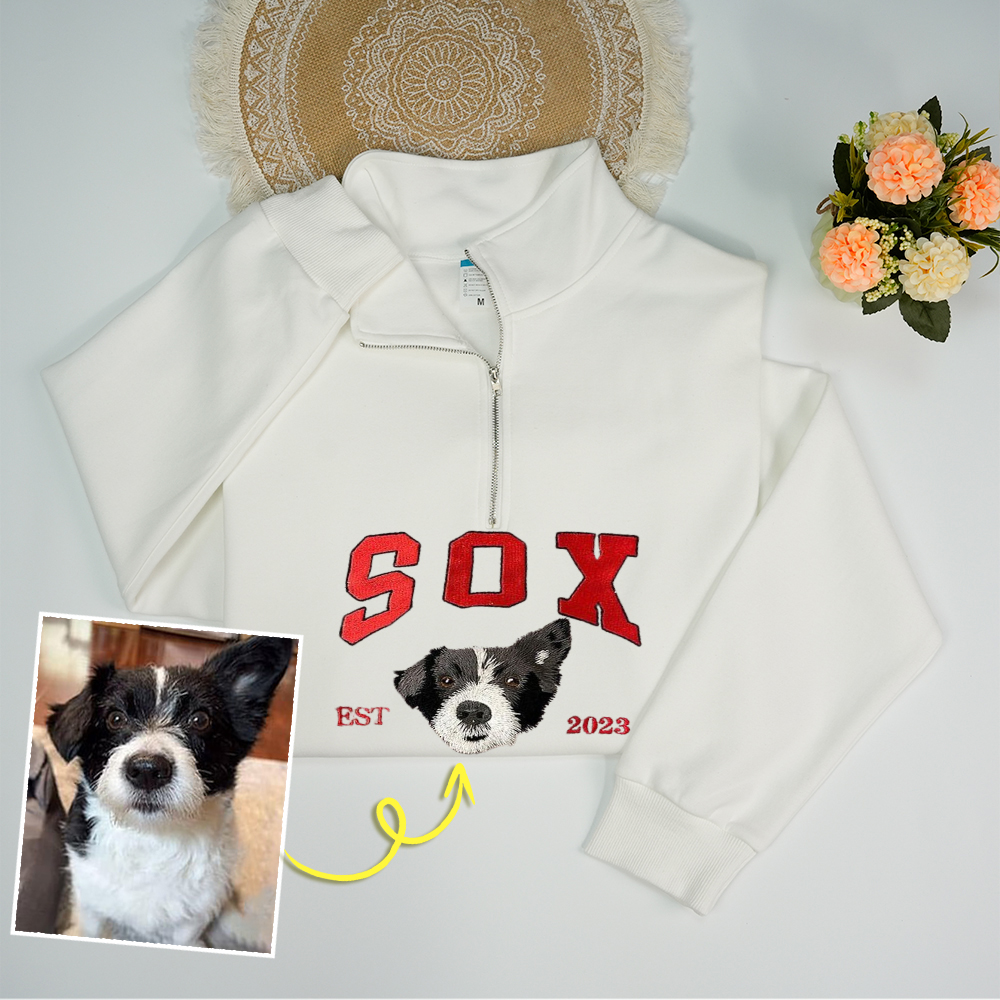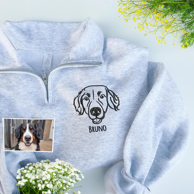 Custom Premium Handcrafted Pet Photo Embroidery with Pet Name Quarter-Zip Sweatshirt