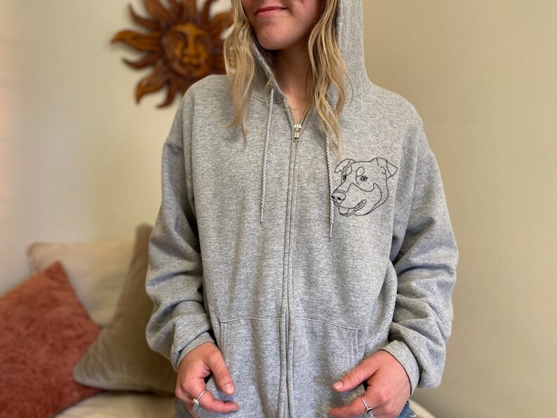 Custom Embroidered Pet Photo Zip Up Hoodie