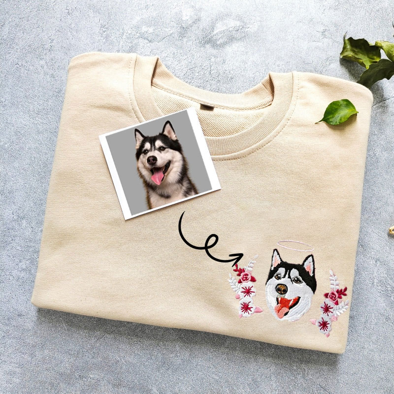 Custom Embroidered Pet Photo Embroidery T-shirt Sweatshirt Hoodie