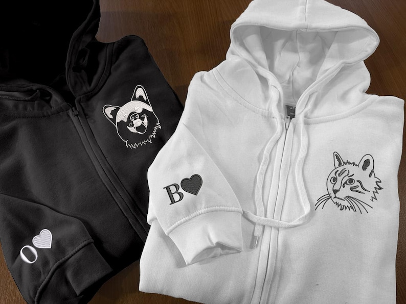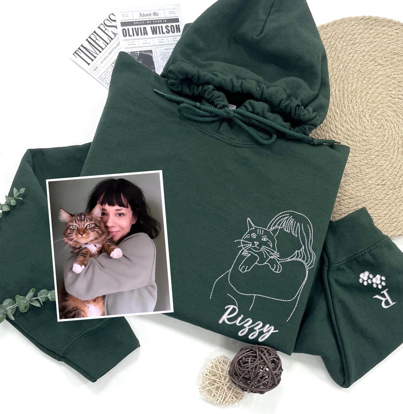 Custom Pet Portrait Shirt, Personalized Embroidered Pet and Name Hoodie Sweatshirt