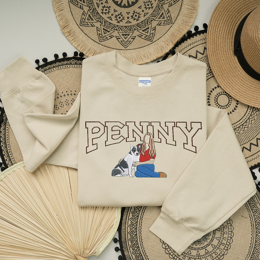 Embroidered Custom Pet with Name, Custom Pet Portrait T-shirt Hoodie Crewneck