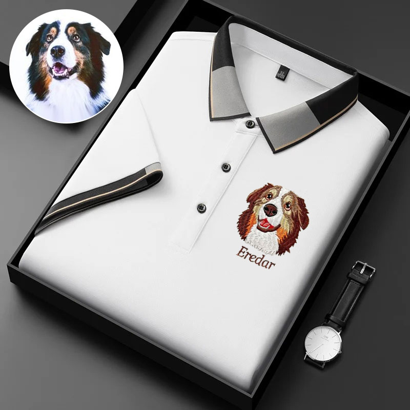 Personalized Full Color Embroidered Pet Portrait Polo Shirt