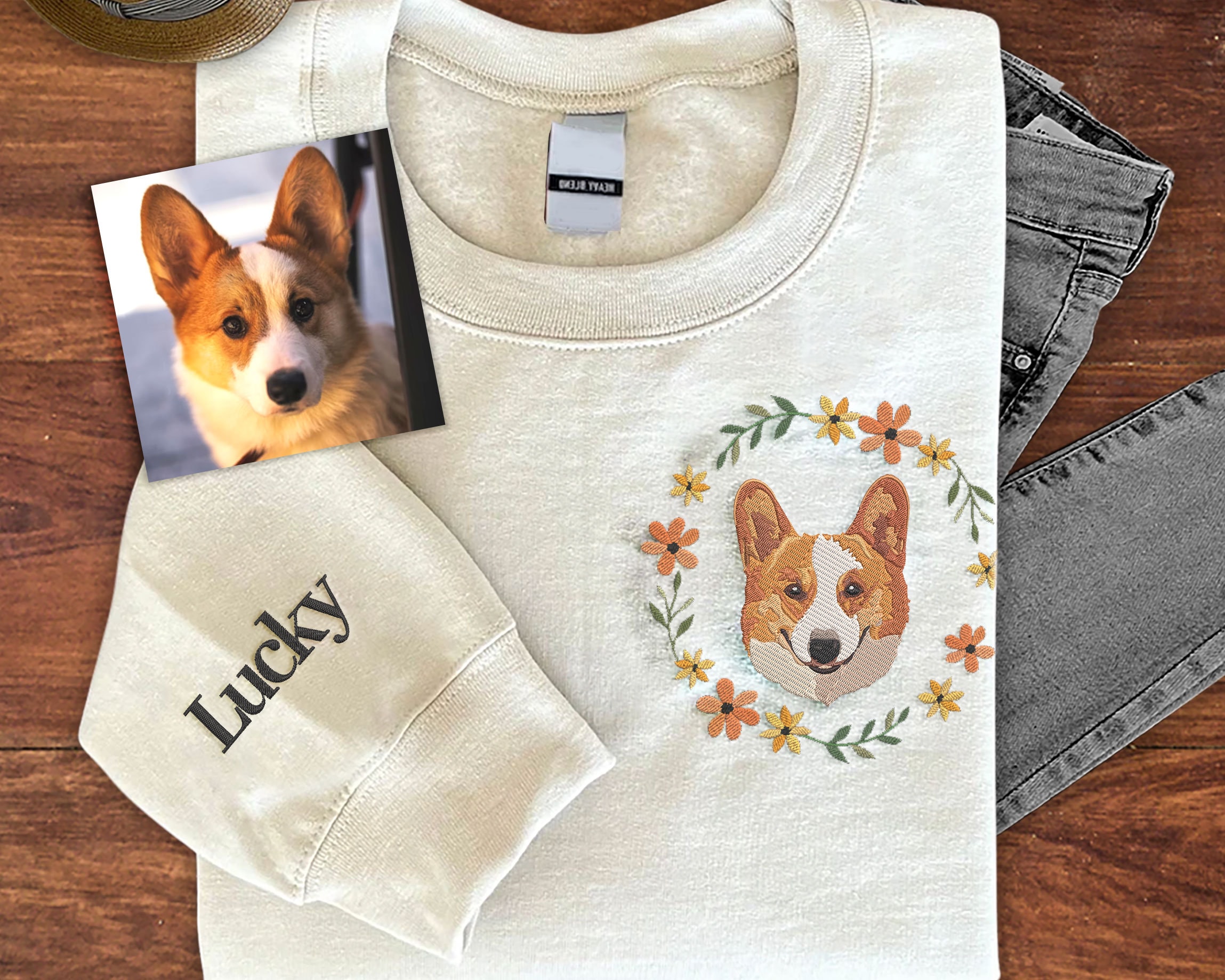 Custom Embroidered Dog Shirt, Custom Pet Portrait Embroidery Sweatshirt Hoodie