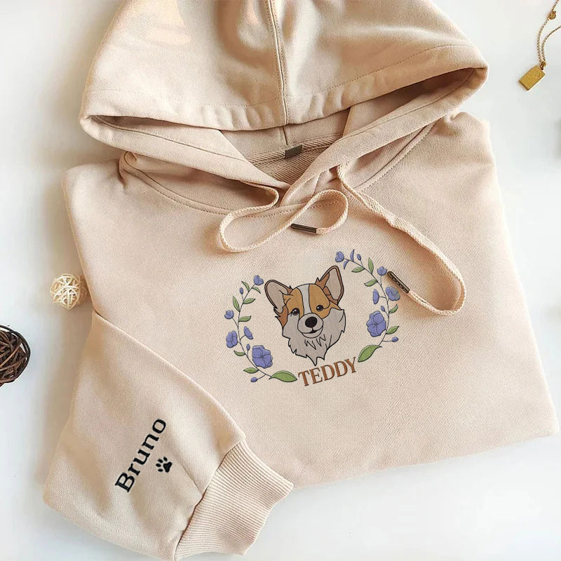Custom Pet Portrait Embroidered Dog Mom Floral Sweatshirt Hoodie
