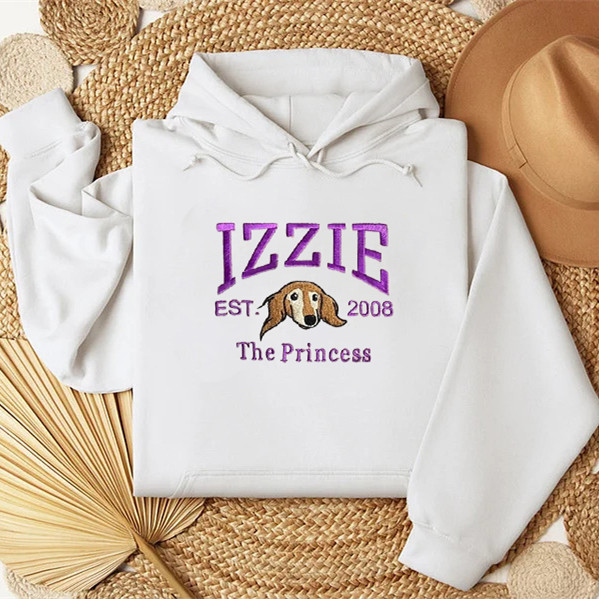 Custom Embroidered Pet Hoodie Using Pet Photo+ Name Varsity Style Sweatshirt Tee