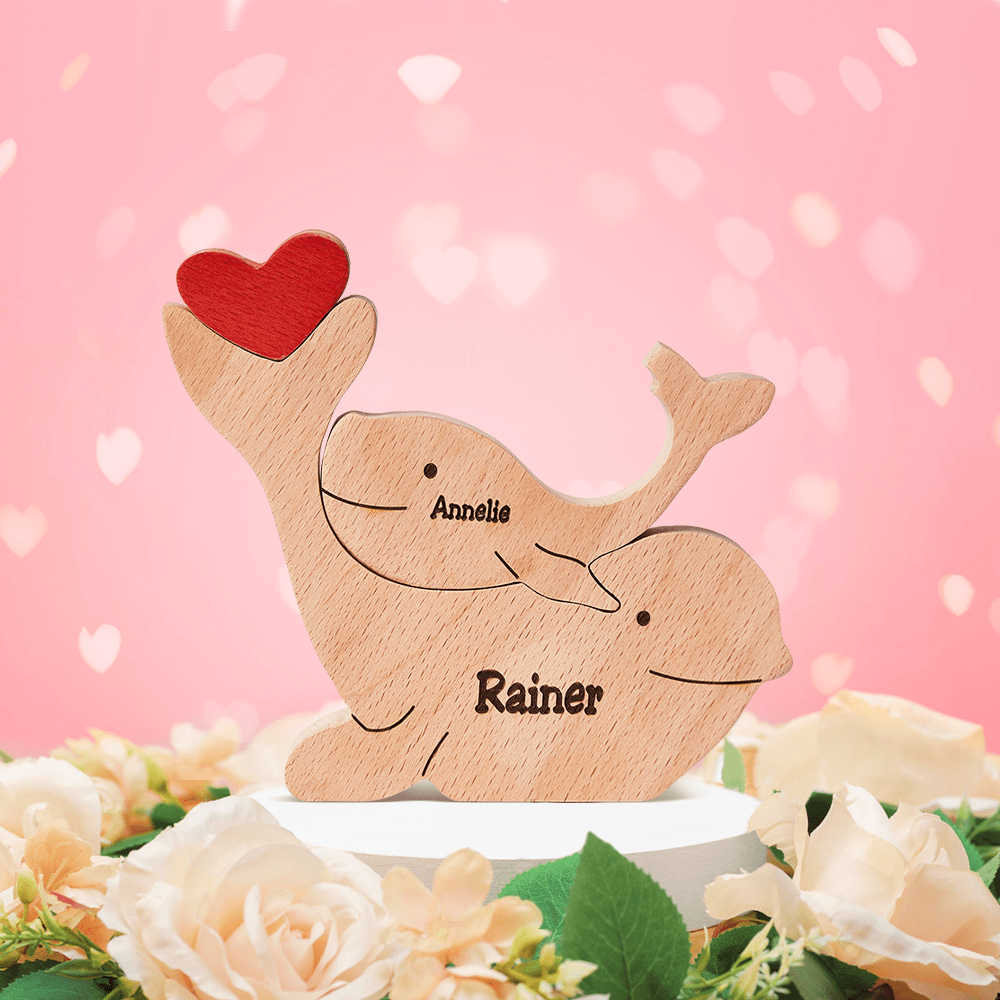 Valentine's Day Gifts Custom Names Wooden Dolphins Family Puzzle Home Decor