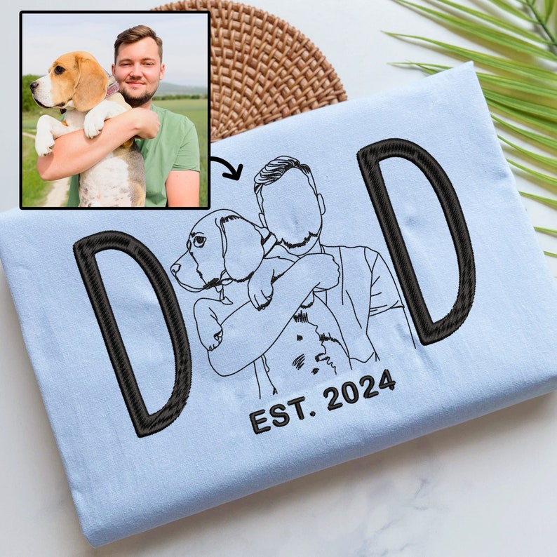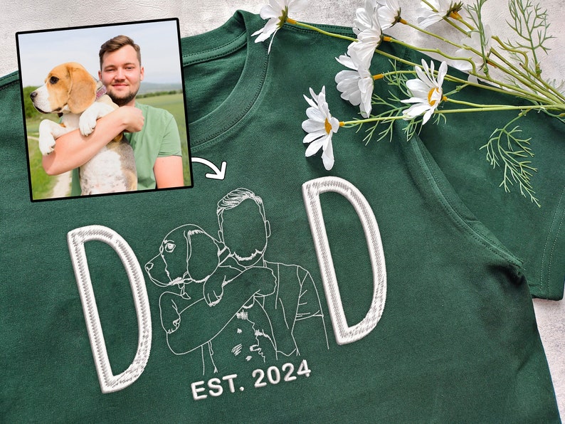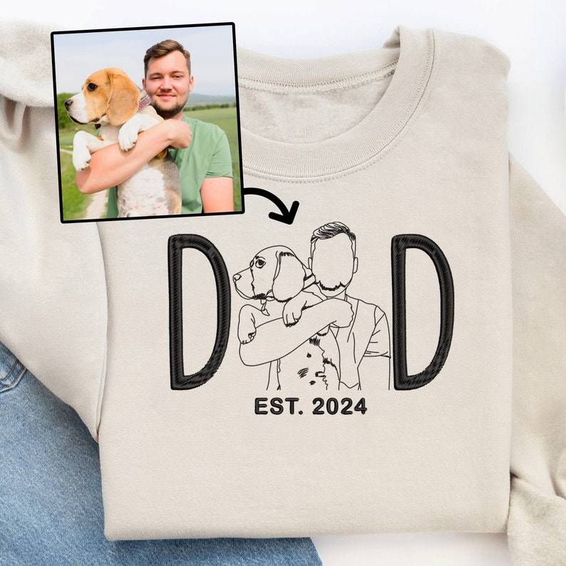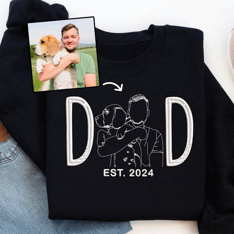 Show off your pet pride in style with our Custom Embroidered Dog Dad / Dog Mom apparel! Whether you're a proud Dog Mom or Dad, this personalized hoodie, sweatshirt, or T-shirt features a beautiful embroidered portrait of your furry friend, created from your favorite photo. It’s the perfect way to carry your pet with you wherever you go! 🐕💖