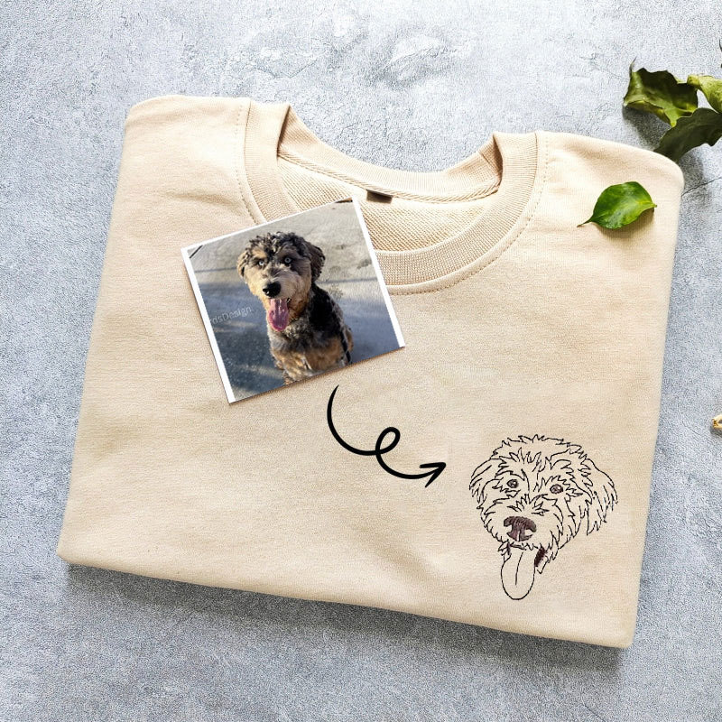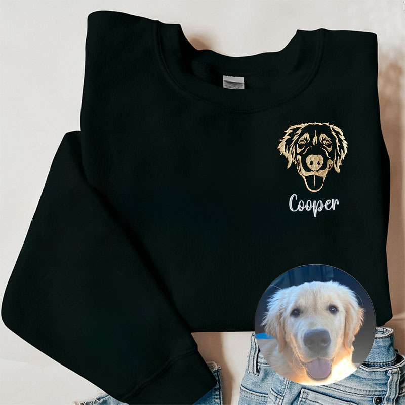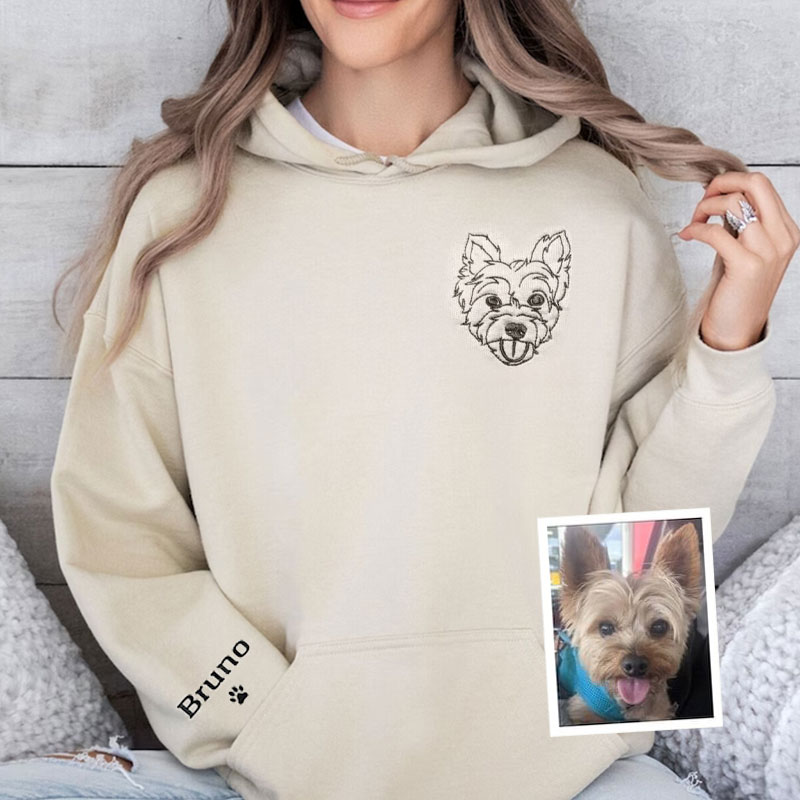 Custom Embroidered Dog Sweatshirt, Personalized Embroidery Pet Portrait Pet Name Sweatshirt Hoodie