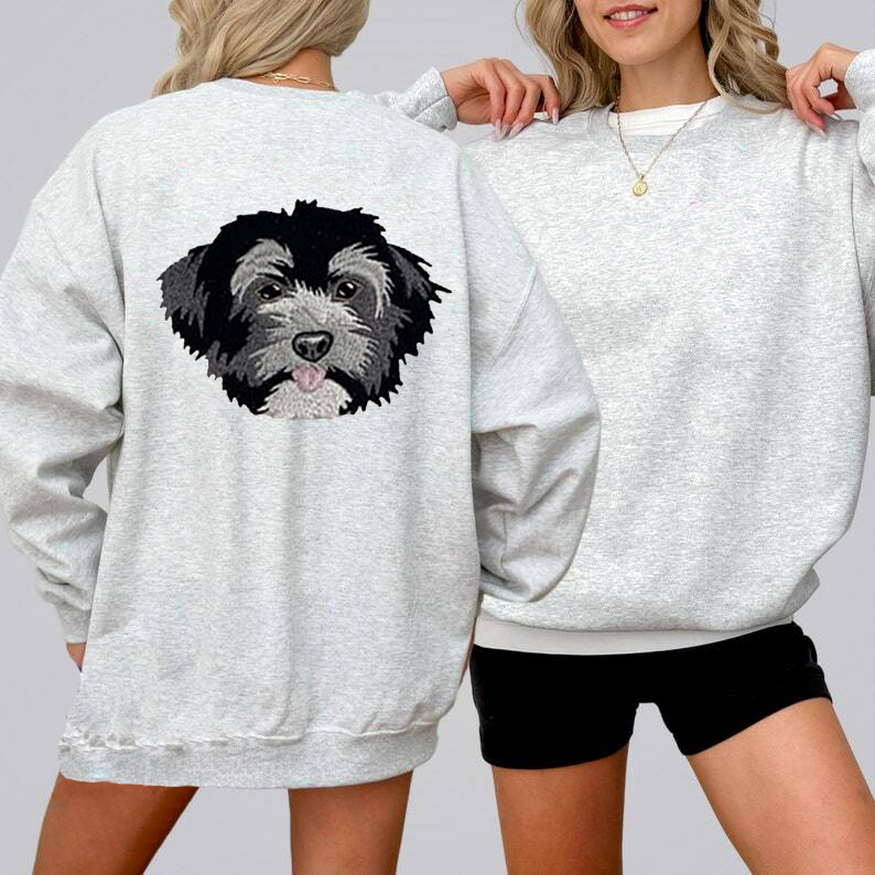 Custom Embroidered Pet Portrait Hoodie, Embroidered Pet Portrait on the Back of Sweatshirt
