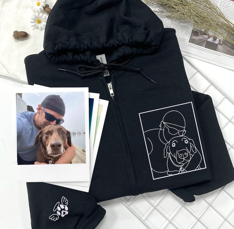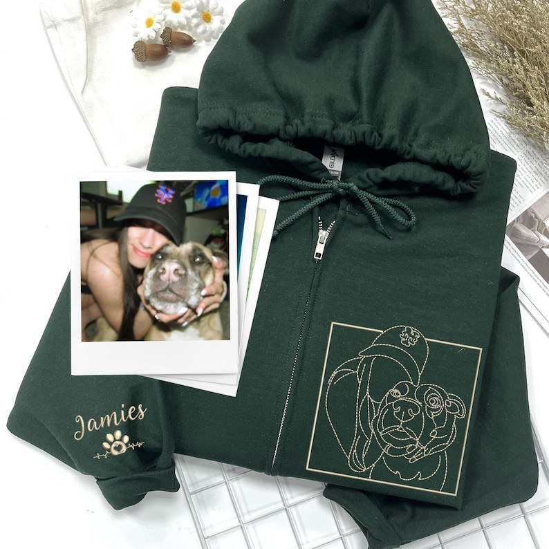 Custom Embroidered Pet Portrait Hoodie From Your Photo Zip-Up Hoodie