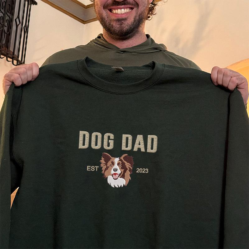 Custom Embroidered Varsity Cat Dad Sweatshirt or Hoodie Portrait from Photo- Mother's Day/Father's Day Gift