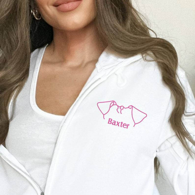 ❤️ Custom EMBROIDERED Zip-Up Pet Sweatshirt, Dog Mom Gift, Dog Embroider, Dog Lover Gift ❤️