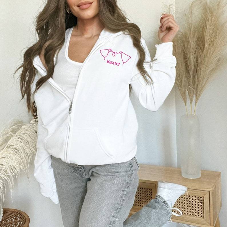 Custom Embroidered Zip-up Hoodie Personalized Dog/ Cat Ears Hoodie