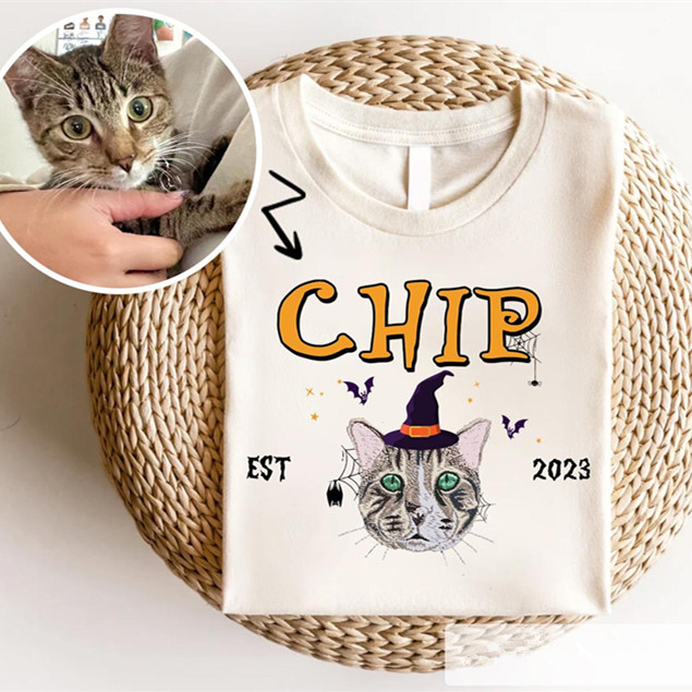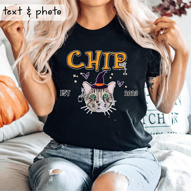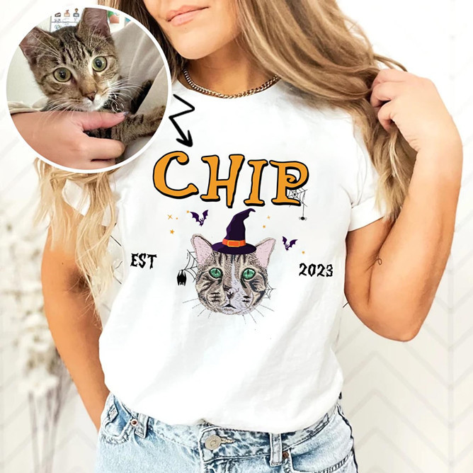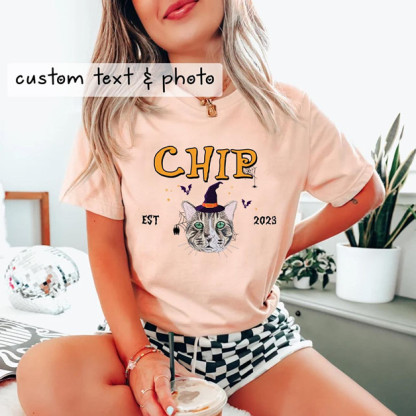 Custom Pet From Your Photo Halloween Shirt, Personalized Cat Halloween Shirt, Pet Name Shirt, Cat Mom Gift, Cat Lover Gift, Halloween Pet