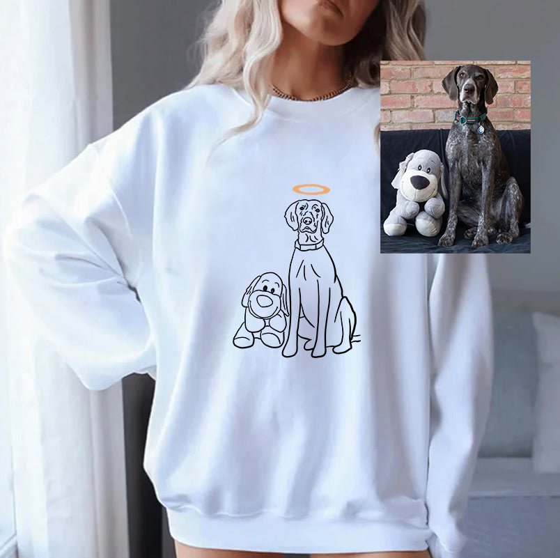 Our custom sweatshirt are the perfect way to keep your cherished memories close to your heart. Made from high-quality materials and featuring your very own moments, this sweatshirt is perfect for couples, pet owners, parents, or anyone who wants to show off their special moments and Commemorate a deceased pet and express your thoughts about it.