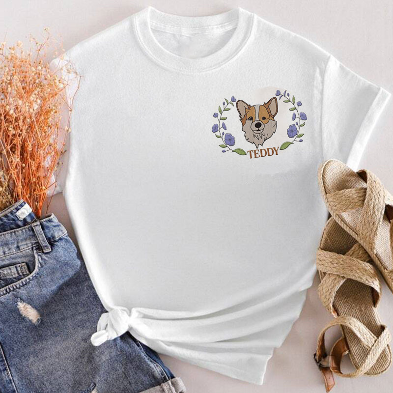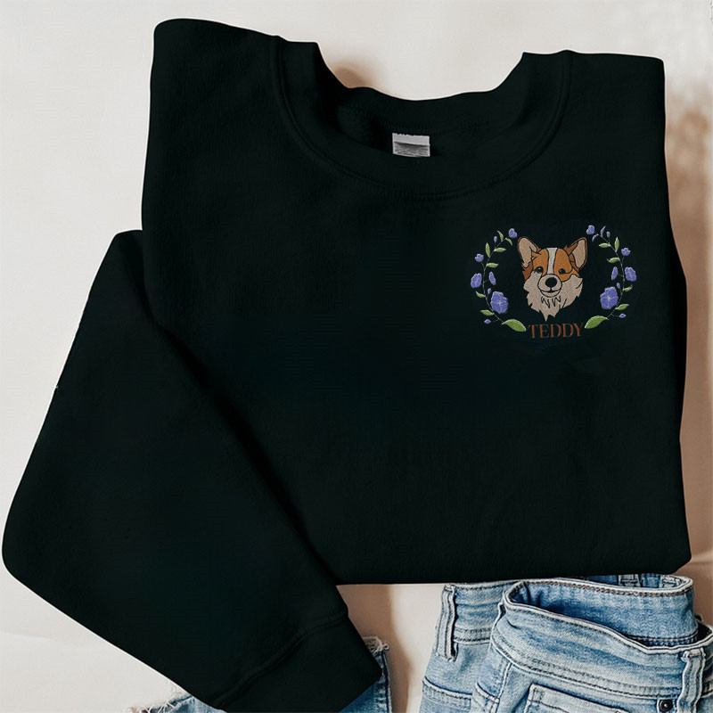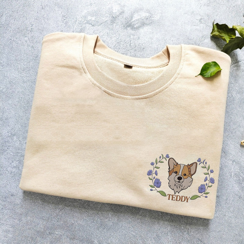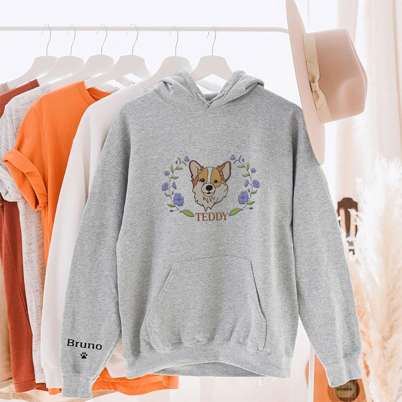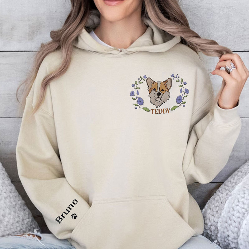 Custom Embroidered Dog Mom Floral Sweatshirt, Mother Dog Lovers Embroidery Shirt, Add Your Dog Photo, Dog Paw on Sleeve, Mother's Day Gift
