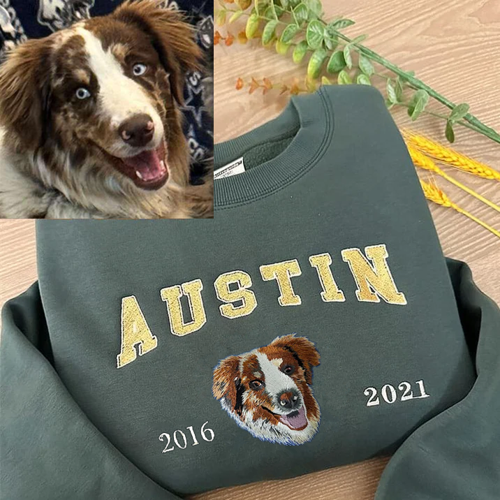 Memory your beloved pet with a custom hand-embroidered sweatshirt or T-shirt, where every stitch brings your furry friend's likeness to life!