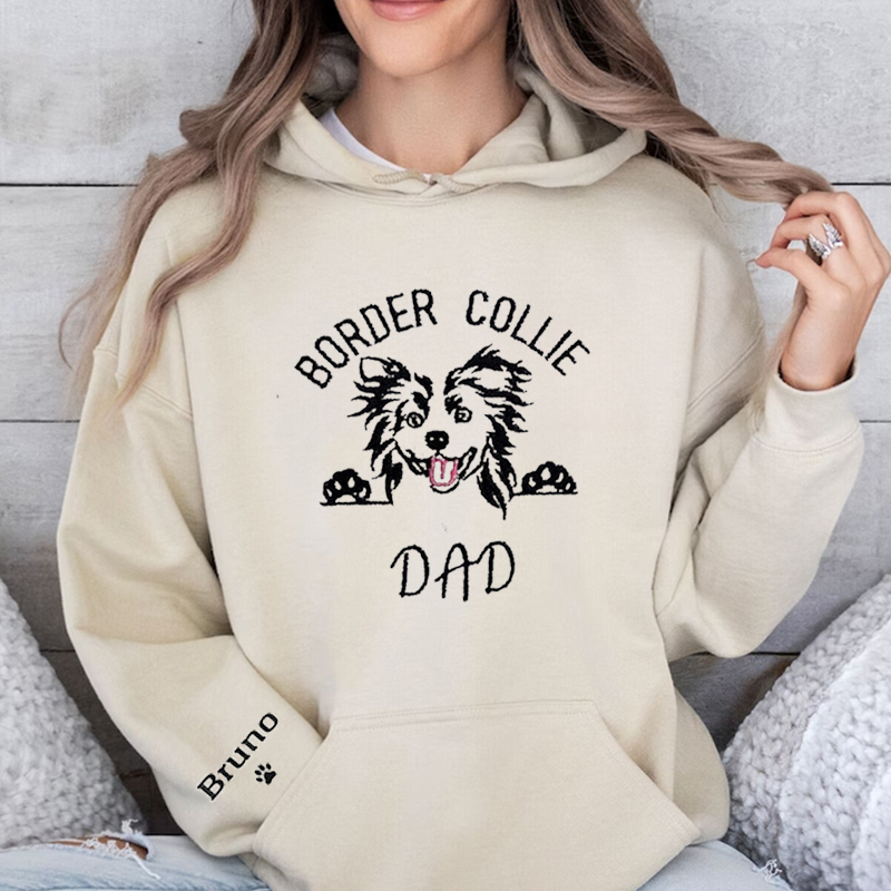Pet Dad Embroidered Hoodie, Personalized Hoodie with Pet Name