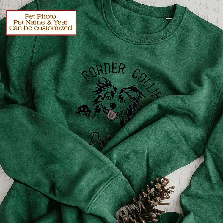 Custom Embroidery Portrait Dog Mom/Dog Dad Sweatshirt with Pet Name- Custom Pet Hoodie- Mother's Day/Father's Day Gift