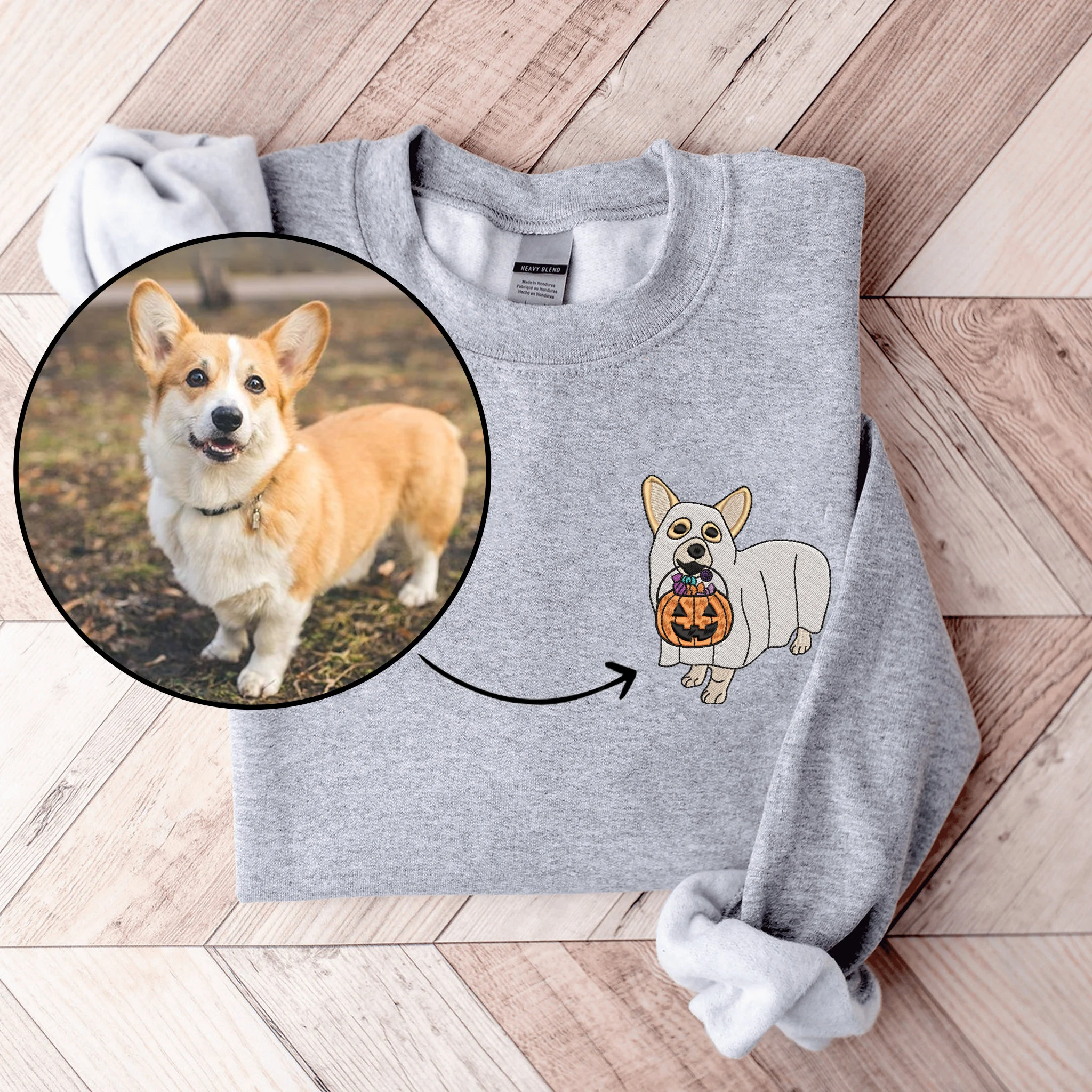 Embroidered Custom Ghost Dog From Your Photo Sweatshirt Halloween Dog Sweatshirt and Hoodie