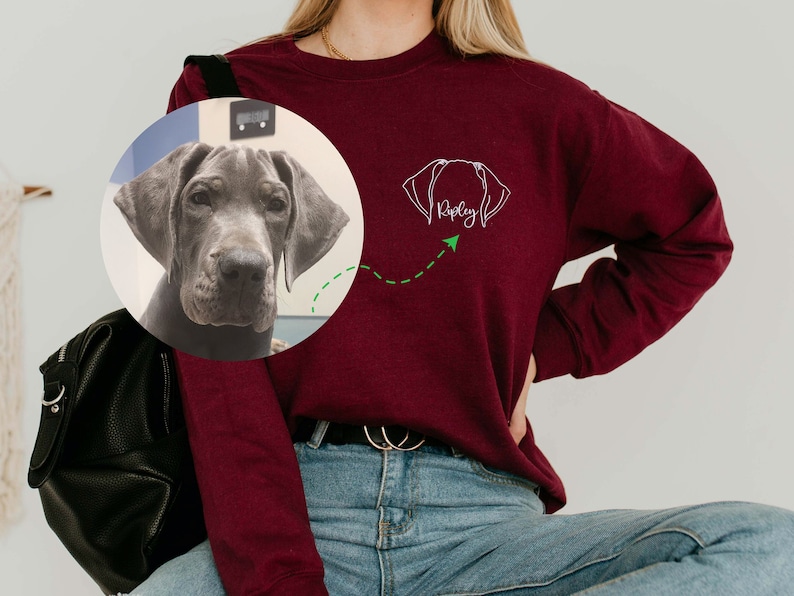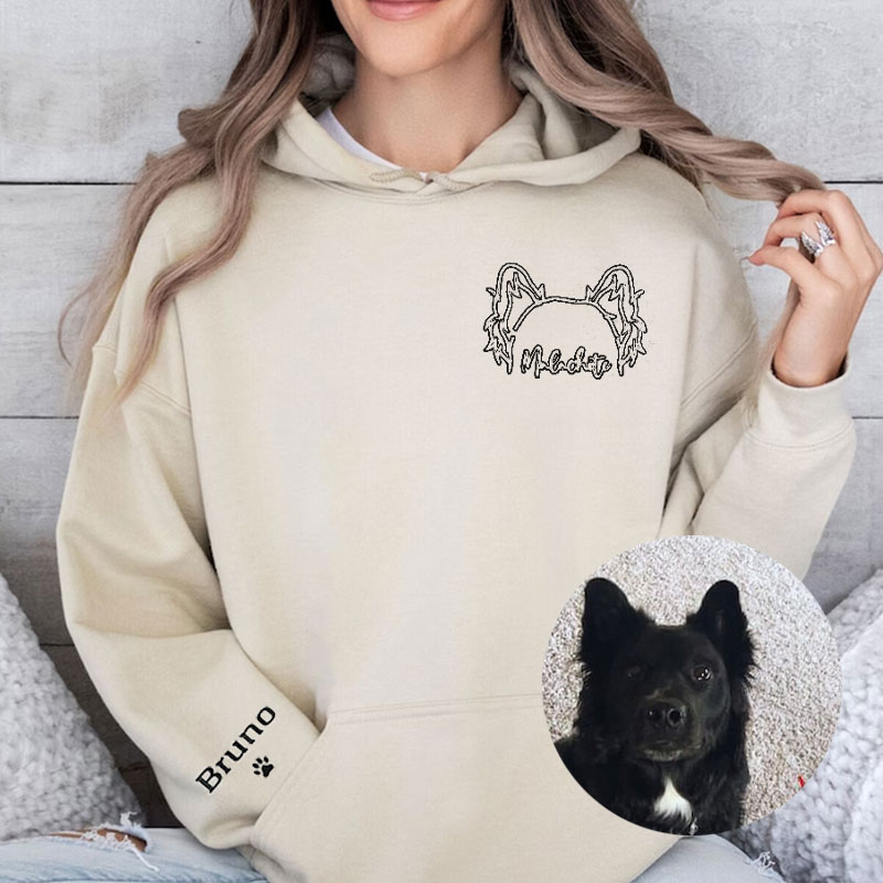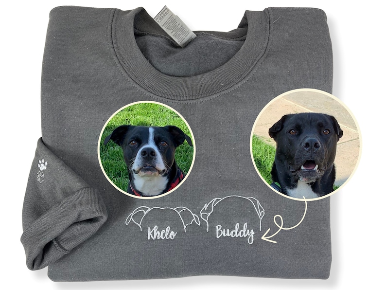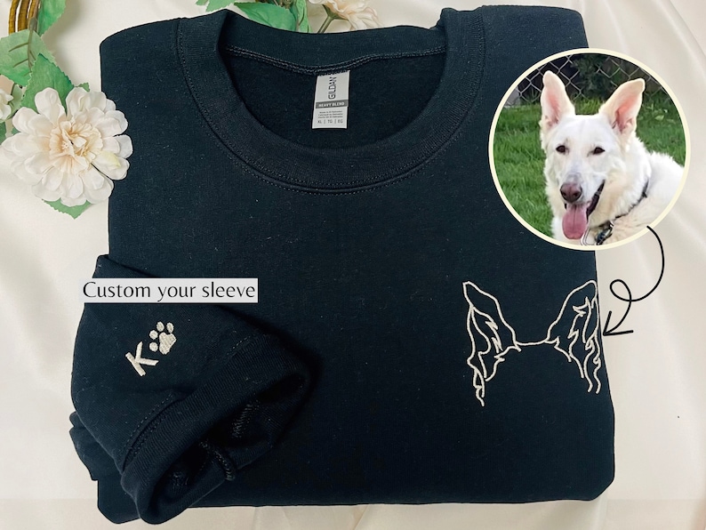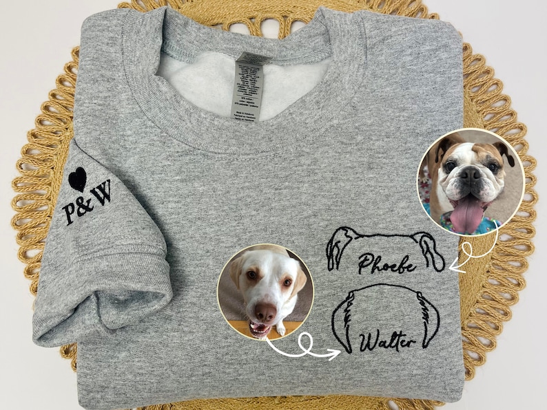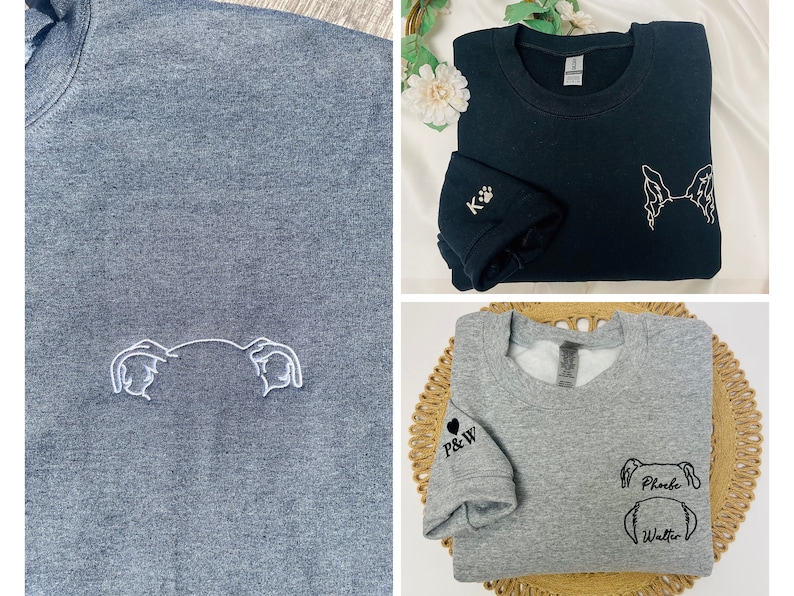 ✅ The crewneck features adorable embroidered dog ears and a paw print on the sleeve, as well as a customizable pet ear outline with personalized names.