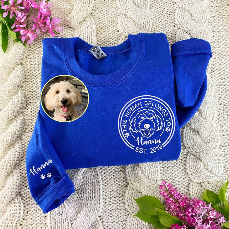 Embroidered This Human Belongs To Sweatshirt, Custom Portrait Pet from photo Hoodie