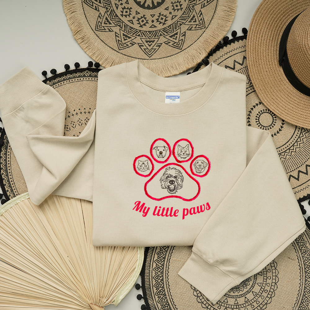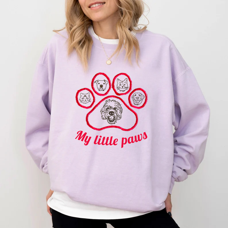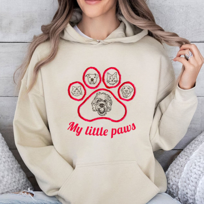 My Little Paws Personalized Pet Face Embroidered Sweatshirt Hoodie T-shirt With Paw Print