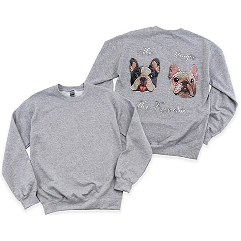 We can embroider your beloved pet's image and name on a sweatshirt (or a hoodie),to show the bond between you.🐾