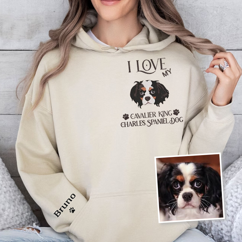 Personalized Embroidered I Love My Pet Dog Cat Hoodie Sweatshirt T-Shirt