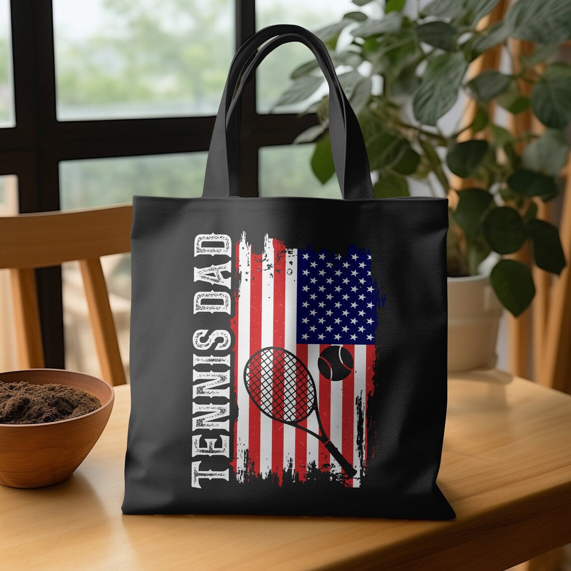 USA Flag Tennis Racket 4th of July Tote Bag