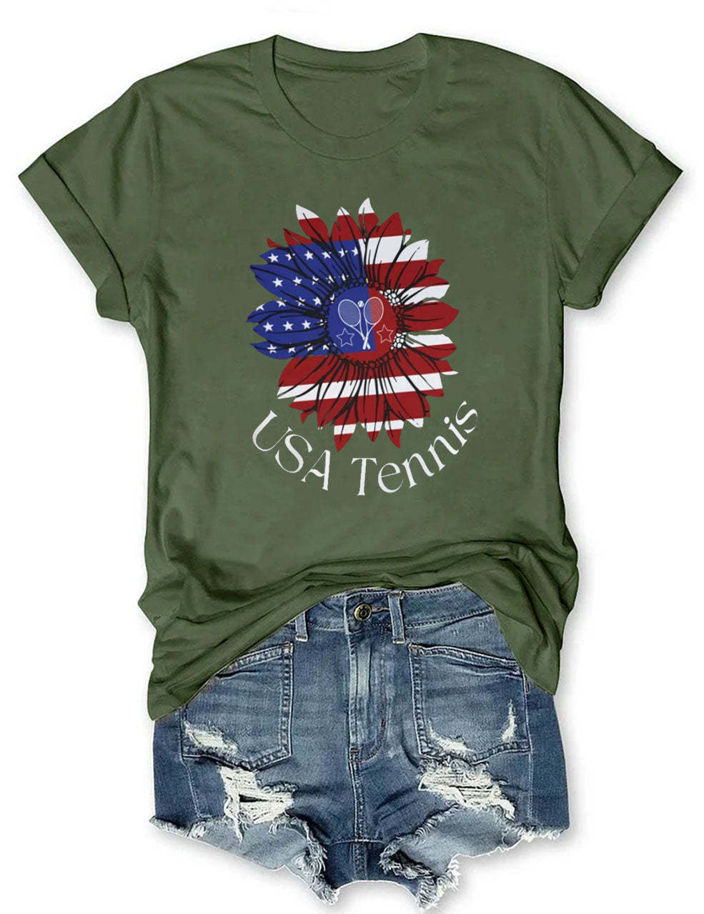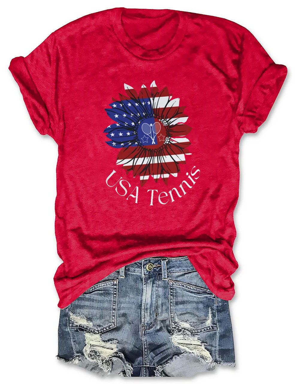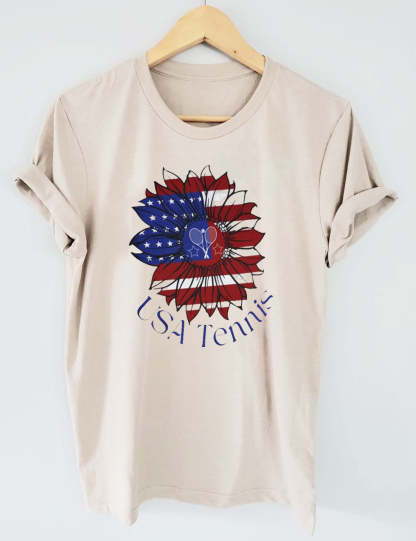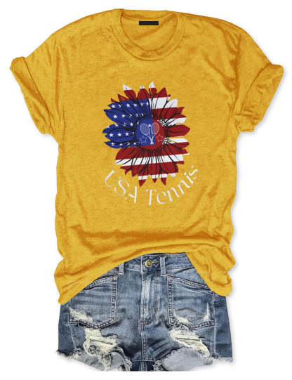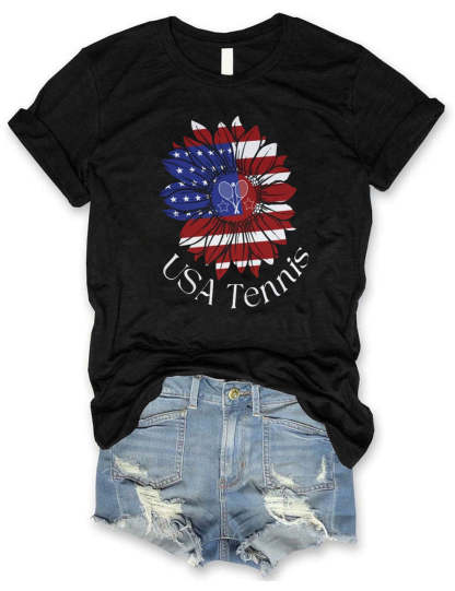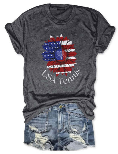 USA Tennis Flower Cute 4th of July T-shirt