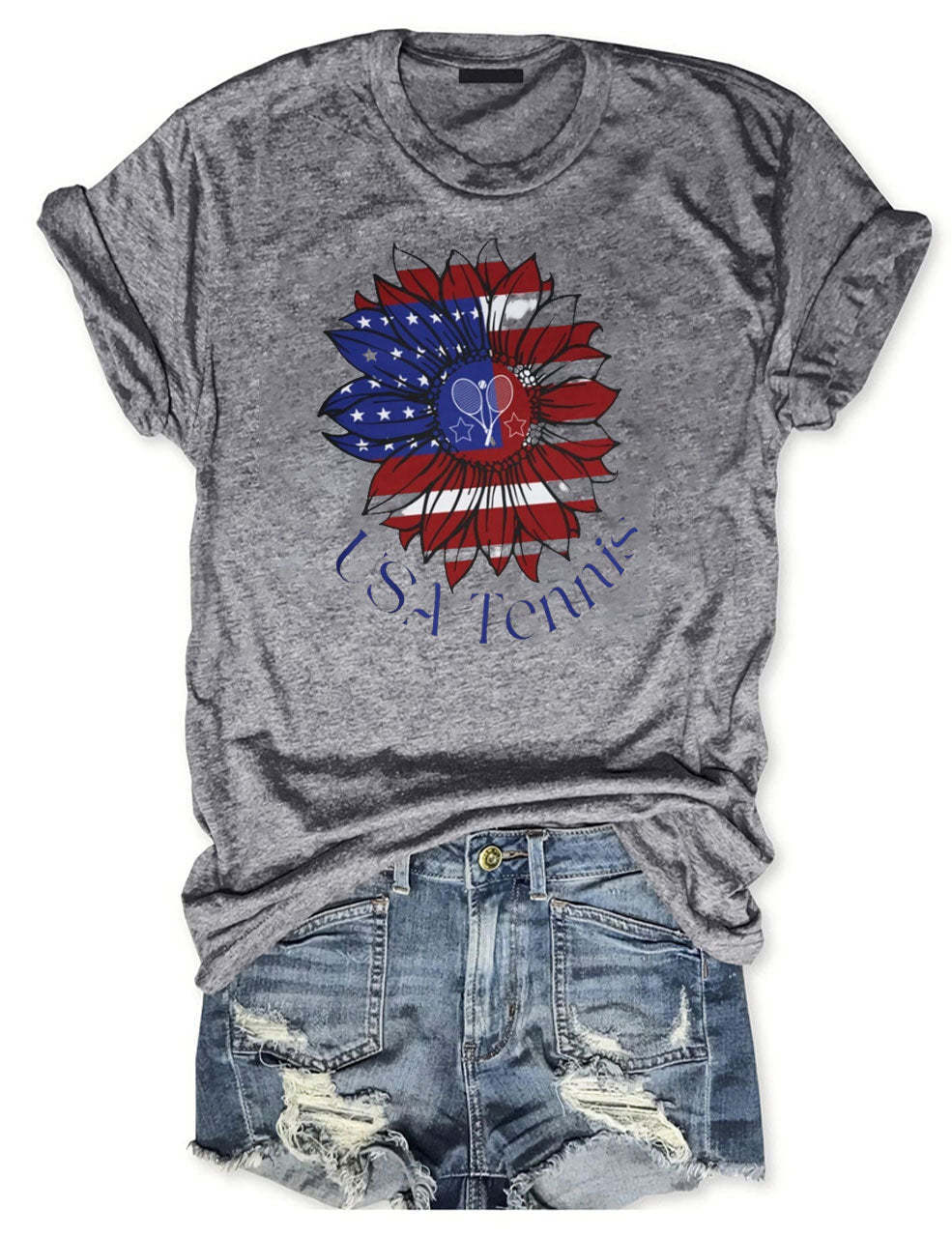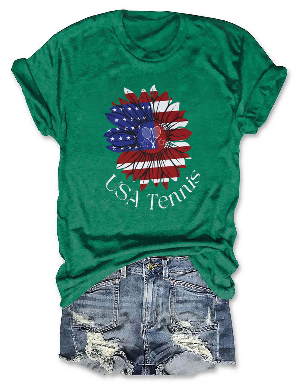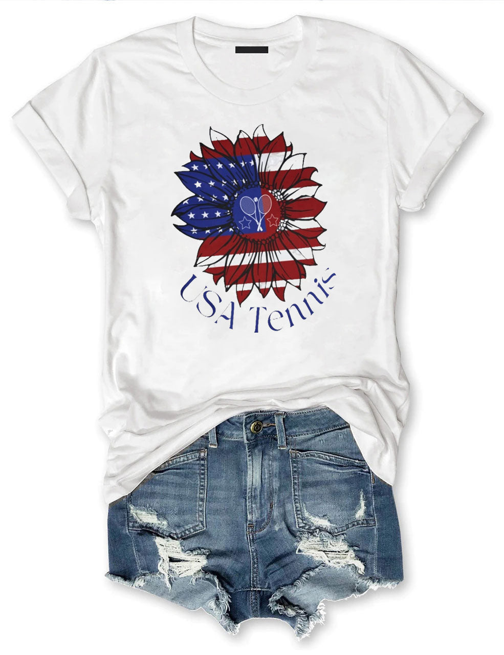 USA Tennis Flower Cute 4th of July T-shirt