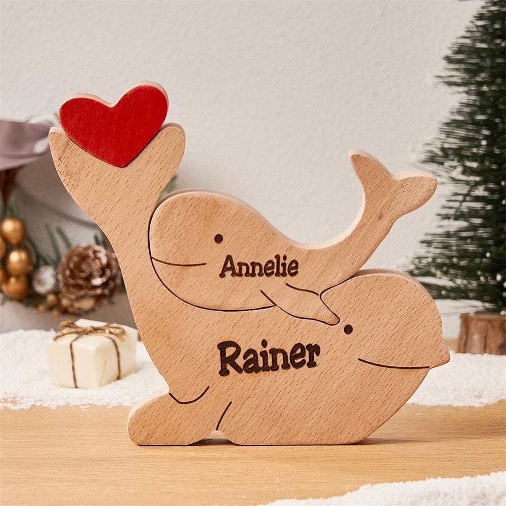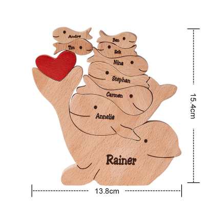Valentine's Day Gifts Custom Names Wooden Dolphins Family Puzzle Home Decor