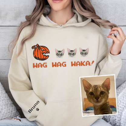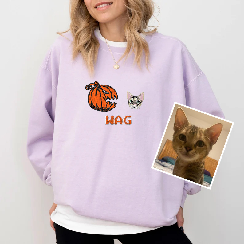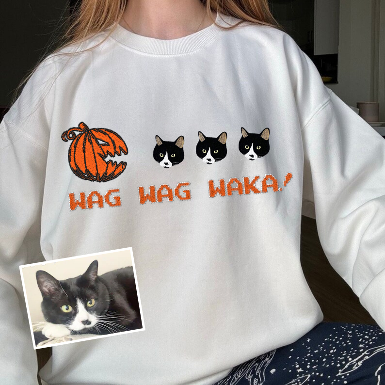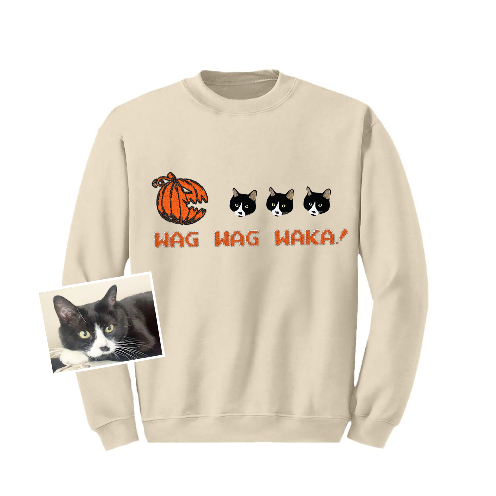 🎃 Wag Wag Waka! - Custom Pet Portrait Embroidered Halloween Pumpkin T-Shirt, Sweatshirt, Hoodie 🐾