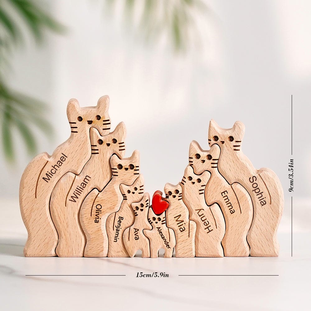 Each cat puzzle piece can be engraved with a family member's name. Each uniquely shaped piece of these personalized wooden puzzle bears brings a special family member and their love to life, making them the perfect surprise gift for any celebration.